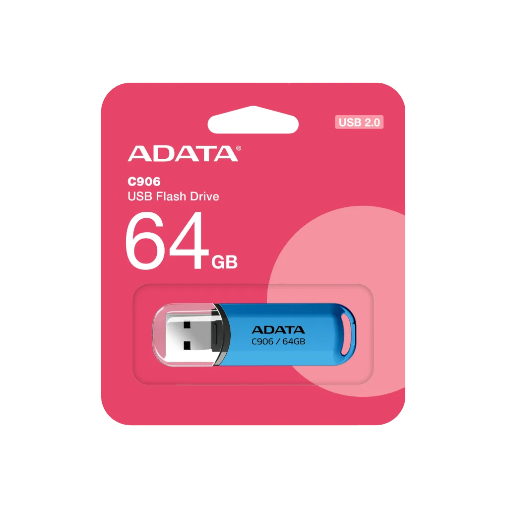 ADATA AC906-64G-RWB. Maht: 64 GB, Seadme liides: USB tüüp A, USB versioon: 2.0. Toote kuju: Kork. Kaal: 9 g. Toote värv: Sinine, Läbipaistev