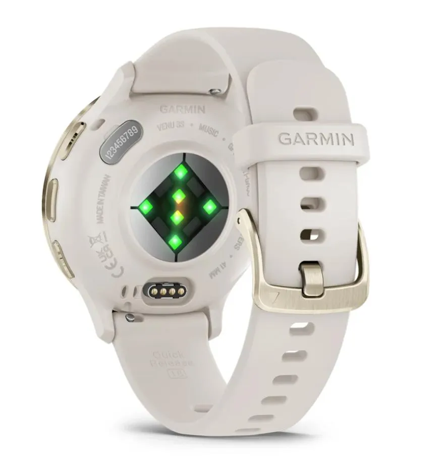 | Summary | Garmin Venu 3S. Display diagonal: 3.05 cm (1.2"), Display technology: AMOLED, Display resolution: 390 x 390 pixels, Touchscreen. Flash memory: 8 GB. Wi-Fi. GPS (satellite). Weight: 40 g. Band material: Silicone, Band colour: Ivory |