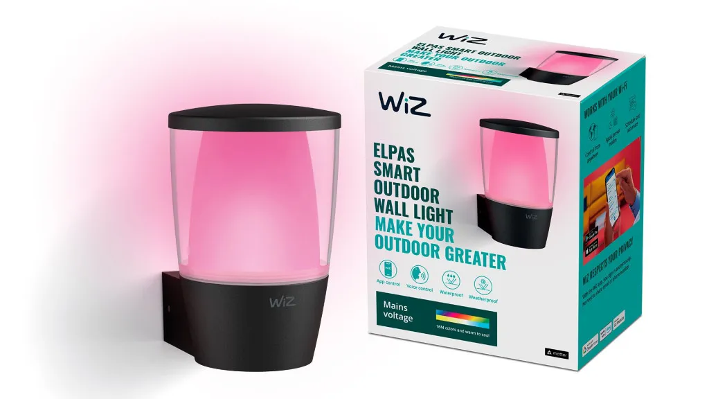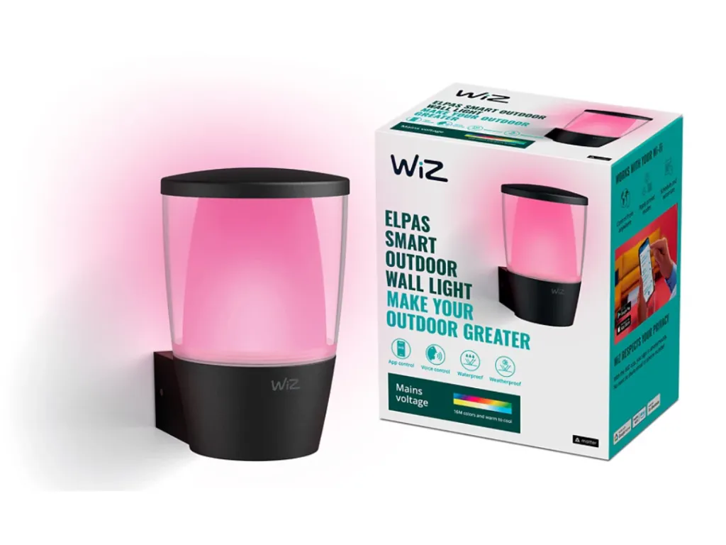 WiZ Seinavalgusti ELPAS. Tüüp: Nutikas seinalamp, Toote värv: Must, Pirni tüüp: LED. Sisendpinge: 220-240 V, AC-sisendsagedus: 50 - 60 Hz, AC-sisendpinge: 220 - 240 V. Laius: 109 mm, Sügavus: 134 mm, Kõrgus: 164 mm. Pakendi laius: 8,9 mm, Pakendi sügavus: 22,9 mm, Pakendi kõrgus: 14 mm. Kogus pakis: 1 tk