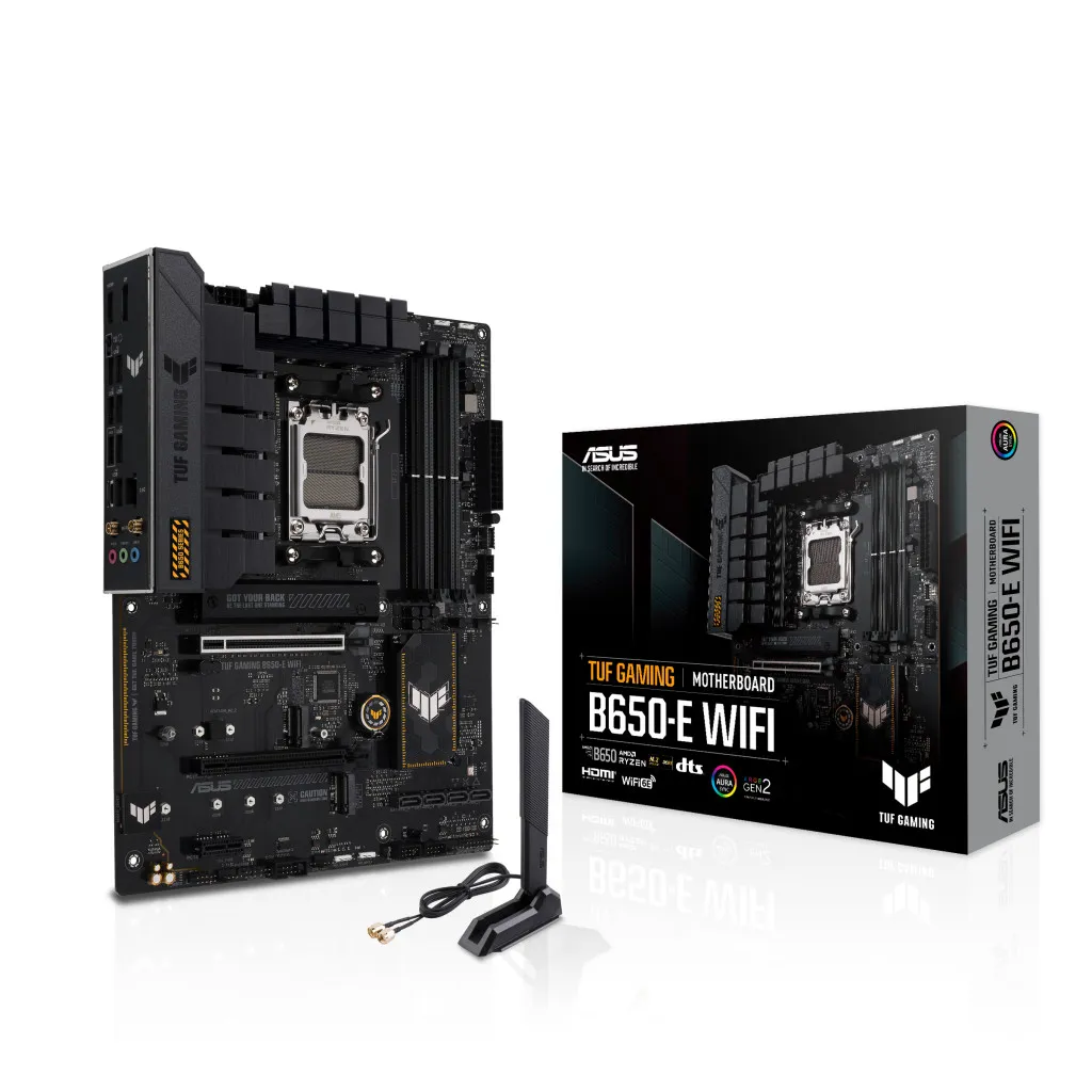 ASUS TUF GAMING B650-E WIFI. Protsessori tootja: AMD, Protsessori pesa: Protsessoripesa AM5, Toetatud protsessoripesad: Protsessoripesa AM5. Toetatud mälutüübid: DDR5-SDRAM, Maksimaalne sisemälu: 192 GB, Mälupesa tüüp: DIMM. Kõvaketta ühenduse tüüp: M.2, SATA III, Toetatud ketaste tüübid: HDD & SSD, RAID-tasemed: 0, 1, 10. Ethernet-liidese tüüp: 2.5 Gigabit Ethernet, Wi-Fi standard: Wi-Fi 6E (802.11ax), WiFi-standardid: 802.11a, 802.11b, 802.11g, Wi-Fi 4 (802.11n), Wi-Fi 5 (802.11ac), Wi-Fi 6 (802.11ax), Wi-Fi 6E.... Komponent: PC, Emaplaadi kujutegur: ATX, Emaplaadi kiibistik: AMD