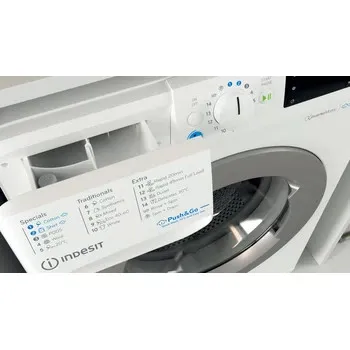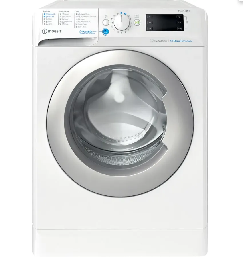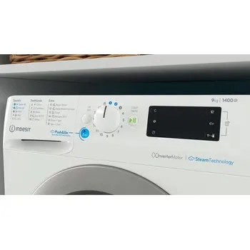 Indesit BWE 91496X WSV EE. Laadimistüüp: Eest täidetav. Nimitäitekogus: 9 kg, Tsentrifuugimise klass: B, Müratase (tsentrifuugimisel): 78 dB, Maksimaalne pöörlemiskiirus: 1400 RPM. Toote värv: Valge. Laius: 595 mm, Sügavus: 630 mm, Kõrgus: 845 mm. Energiatõhususe klass: A