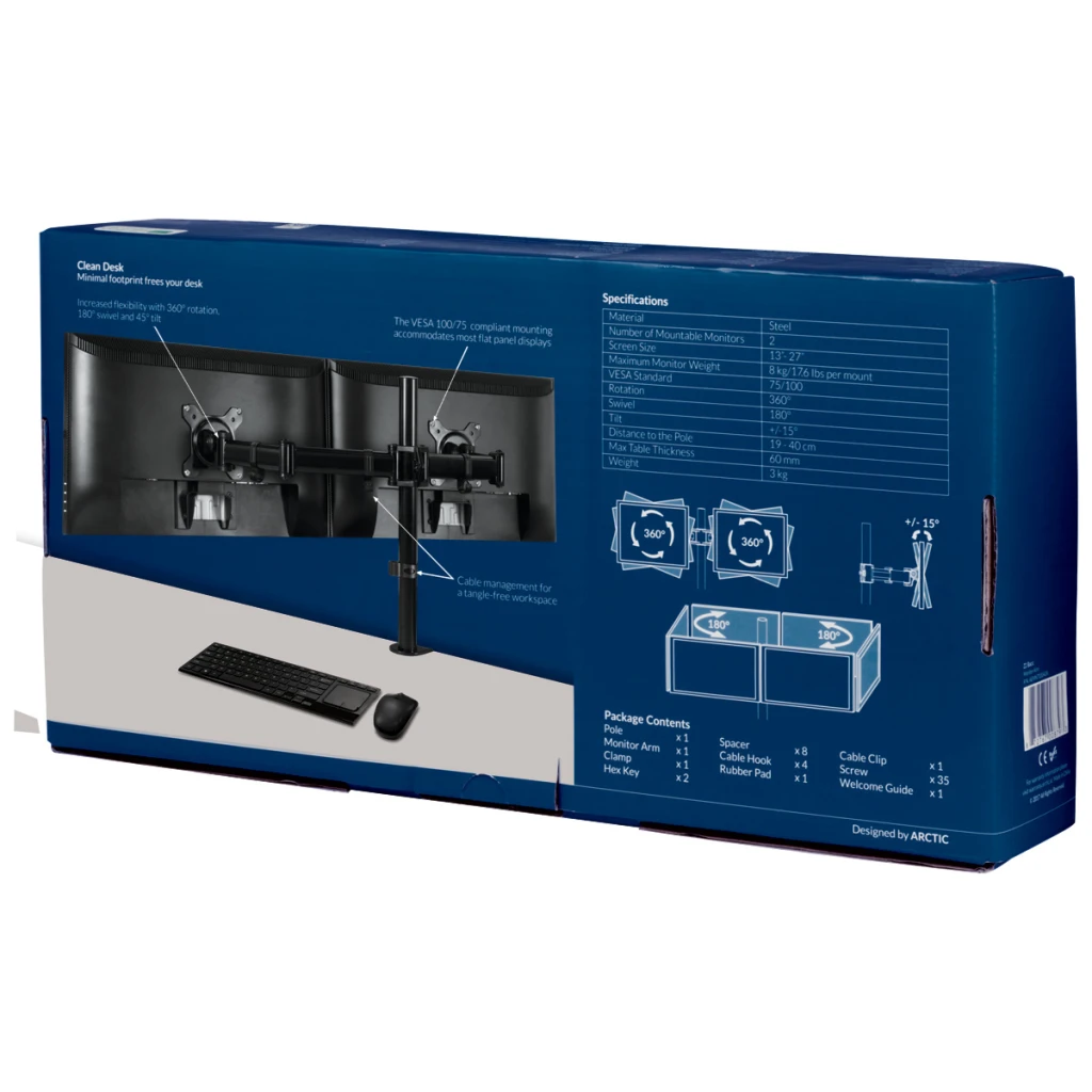 ARCTIC Z2 Basic. Paigaldus: Klamber, Maksimaalne kaal (mahutavus): 16 kg, Ekraani minimaalne suurus: 33 cm (13"), Ekraani maksimaalne suurus: 68,6 cm (27"), Paigaldussüsteemi ühilduvus (min): 75 x 75 mm, Paigaldussüsteemi ühilduvus (max): 100 x 100 mm. Kaldenurk: -15 - 15°. Toote värv: Must