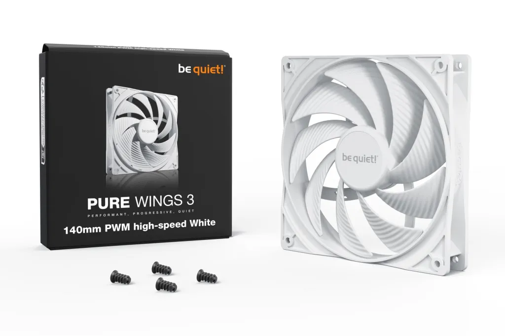 be quiet! Pure Wings 3 140mm PWM high-speed White. Tüüp: Ventilaator, Ventilaatori läbimõõt: 14 cm, Pöörlemiskiirus (max): 1800 RPM, Õhuvool: 122,6 m³/h, Maksimaalne õhusurve: 2,44 mmH2O, Laagri tüüp: Rifle laager. Pinge: 5 - 13.2 V. Laius: 140 mm, Sügavus: 140 mm, Kõrgus: 25 mm. Toote värv: Valge