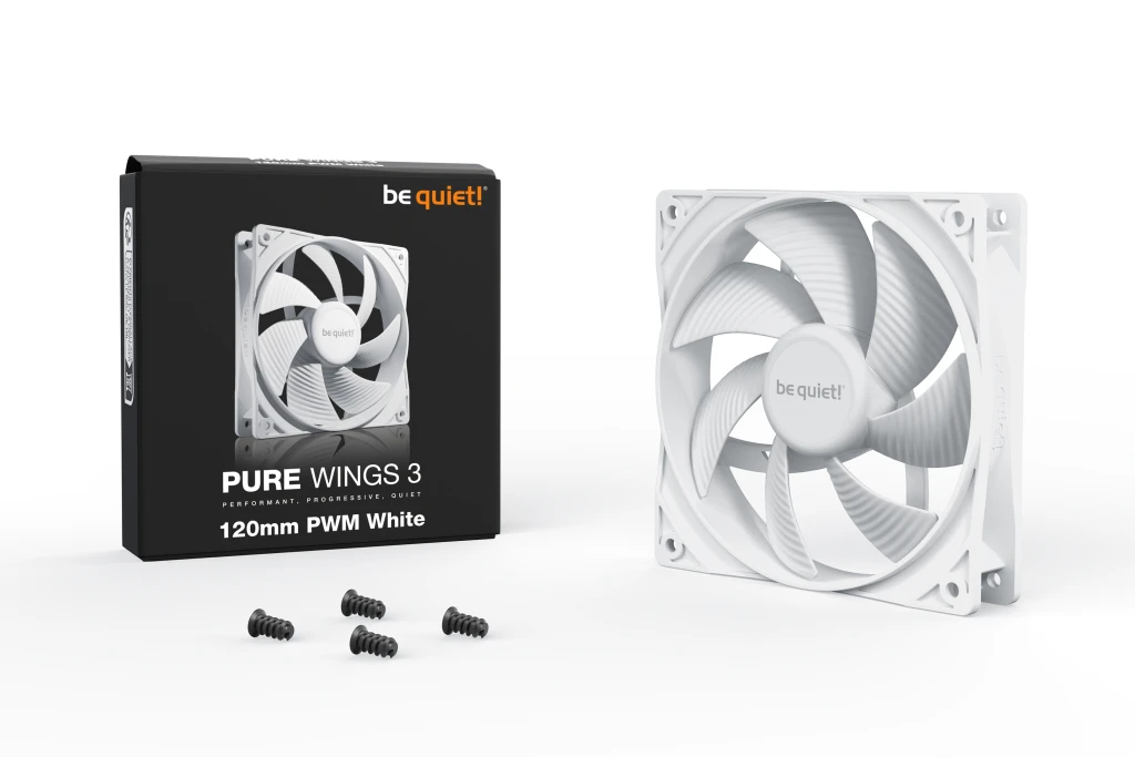 be quiet! Pure Wings 3 120mm PWM White. Tüüp: Ventilaator, Ventilaatori läbimõõt: 12 cm, Pöörlemiskiirus (max): 1600 RPM, Õhuvool: 84,8 m³/h, Maksimaalne õhusurve: 1,45 mmH2O, Laagri tüüp: Rifle laager. Pinge: 5 - 13.2 V. Laius: 120 mm, Sügavus: 120 mm, Kõrgus: 25 mm. Toote värv: Valge