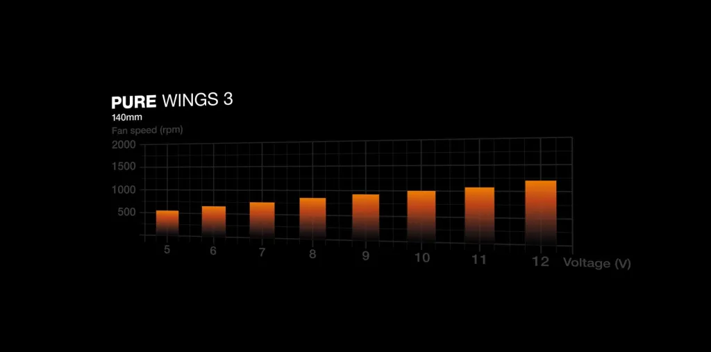 | Summary | be quiet! Pure Wings 3 140mm. Type: Fan, Fan diameter: 14 cm, Rotational speed (max): 1200 RPM, Airflow: 97.5 m³/h, Maximum air pressure: 0.96 mmH2O. Voltage: 5 - 13.2 V. Width: 140 mm, Depth: 140 mm, Height: 25 mm. Product colour: Black |