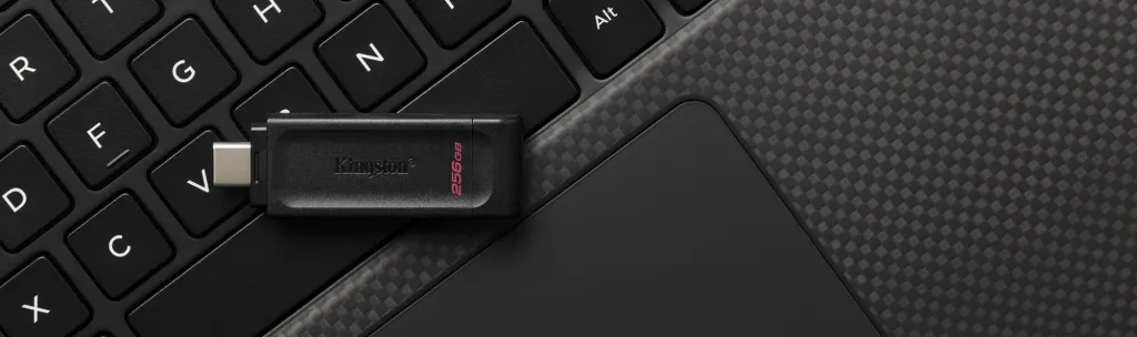 Kingston’s DataTraveler® 70 is a USB 3.2 Gen 1 compliant portable, lightweight USB-C® flash drive. It’s designed to be used with compatible USB-C devices such as notebooks, laptops, tablets and phones. With capacities of up to 256GB*, the DataTraveler 70 is more than capable of expanding your storage for everyday use. It comes backed with a 5-year warranty and free tech support.
