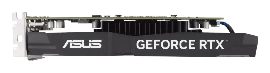 A carefully designed shroud, heatsink, and heatpipe layout allows the two fans to leverage chassis side-panel ventilation and deliver thermal performance that belies the card’s size.