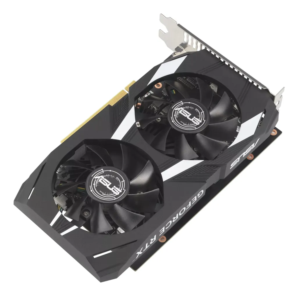 | Summary | ASUS Dual -RTX3050-O6G. Graphics processor family: NVIDIA, Graphics processor: GeForce RTX 3050. Discrete graphics card memory: 6 GB, Graphics card memory type: GDDR6, Memory bus: 96 bit. Maximum resolution: 7680 x 4320 pixels. DirectX version: 12 Ultimate, OpenGL version: 4.6. Interface type: PCI Express 4.0. Cooling type: Active, Number of fans: 2 fan(s) |