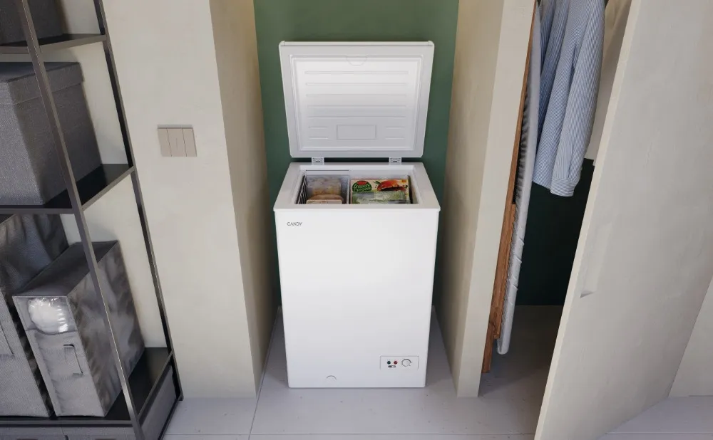 Candy CCHH 100E. Sügavkülmiku netomahutavus: 97 l, Kliimaklass: Kliimaklass SN-T, Külmutusvõimsus: 4,5 kg/24 h, Säilitamise aeg elektrikatkestuse ajal: 13 h, Müratase: 39 dB, Hinnang: 4*. Ukse hing: Vasak. Energiatõhususe klass: E, Aastane energiakulu: 168 kWh. Toote värv: Valge