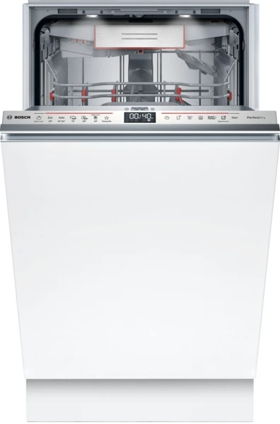 Bosch Serie 6 SPV6ZMX17E. Seadme paigaldus: Täielikult sisseehitatud, Toote suurus: Kitsas (45 cm), Kontrolli tüüp: Puudutus. Asetuste arv: 10 kohta, Müraemissiooni klass: B, Müratase: 42 dB. Jalgade reguleerimine: 6 cm. Energiatõhususe klass: C, Veekulu tsükli kohta: 8,9 l, Energiatarve 100 tsükli kohta: 59 kWh. Laius: 448 mm, Sügavus: 550 mm, Kõrgus: 815 mm