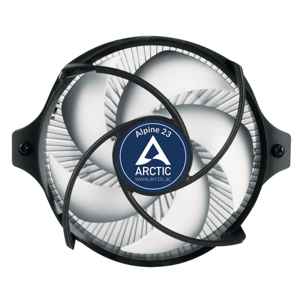 ARCTIC Alpine 23 - Compact AMD CPU-Cooler. Tüüp: Õhujahuti, Ventilaatori läbimõõt: 9 cm, Pöörlemiskiirus (min): 100 RPM, Pöörlemiskiirus (max): 2000 RPM, Müratase: 0,3 soon, Laagri tüüp: Fluid Dynamic Bearing (FDB). Pinge: 12 V. Laius: 98,6 mm, Sügavus: 121 mm, Kõrgus: 65 mm. Toote värv: Alumiinium, Must