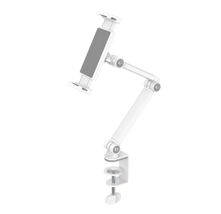 The Neomounts DS15-545WH1 is an universal tablet mount for tablets from 4,7" up to 12,9" with a weight capacity of 1 kg. The tablet mount has 3 pivoting points and is ideal for hands-free video calling, watching a movie, playing a game or to use a tablet as a second screen. The integrated ball joint allows the mount to rotate 360° so you can switch between portrait and landscape position. Additionally, the clever tilt (270°) and swivel (104°) options allow the stand to further change to the ideal viewing angle. Soft rubber pads protect your device from any scratches and the solid base with anti-skid silicon pads ensure solid positioning of your device