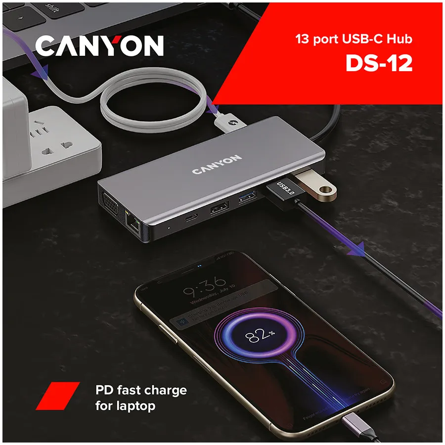 | Commercial Name | CANYON hub DS-12 13in1 4k USB-C Dark Grey |