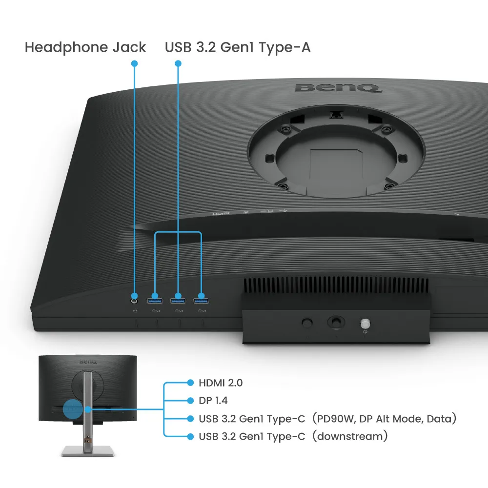 BenQ RD240Q. Ekraani diagonaal: 61,2 cm (24.1"), Ekraani resolutsioon: 2560 x 1600 pikslit, HD tüüp: WQXGA, Ekraani tehnoloogia: LCD, Ekraani pind: Peegeldusvastane, Reaktsiooniaeg: 5 ms, Loomulik kuvasuhe: 16:10, Vaatenurk, horisontaalne: 178°, Vaatenurk, vertikaalne: 178°. Sisseehitatud kõlar(id). Sisseehitatud USB-jaotur, USB-jaoturi versioon: 3.2 Gen 1 (3.1 Gen 1). VESA paigaldamine, Kõrguse reguleerimine. Toote värv: Must
