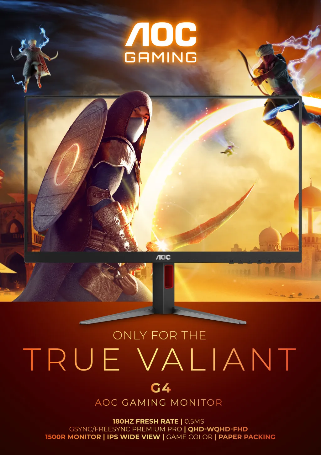 AOC G4 CQ32G4VE. Ekraani diagonaal: 80 cm (31.5"), Ekraani resolutsioon: 2560 x 1440 pikslit, HD tüüp: Quad HD, Ekraani tehnoloogia: LCD, Reaktsiooniaeg: 1 ms, Loomulik kuvasuhe: 16:9, Vaatenurk, horisontaalne: 178°, Vaatenurk, vertikaalne: 178°. VESA paigaldamine. Toote värv: Must, Hall