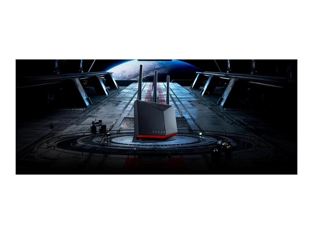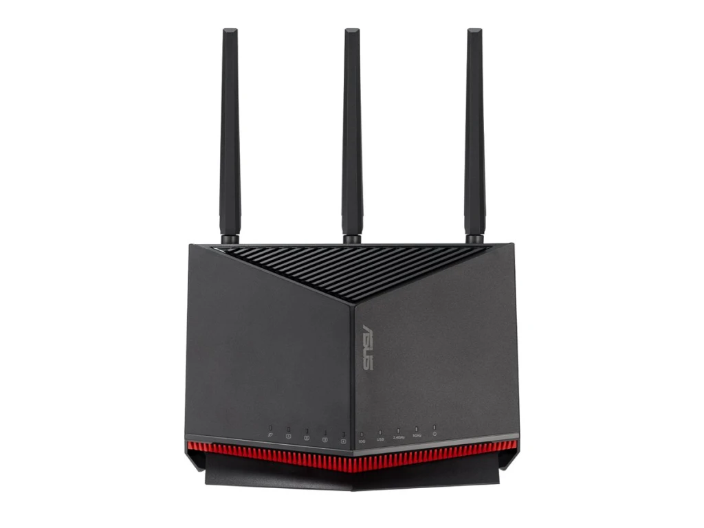 ASUS RT-BE86U. WAN-ühenduse tüüp: RJ-45. Wi-Fi laineala: Kaks sagedusala (2,4 GHz / 5 GHz), Wi-Fi standard: Wi-Fi 7 (802.11be), WLAN edastuskiirus (max): 5764 Mbit/s. Ethernet LAN-liidese tüüp: 10 Gigabit Ethernet, Ethernet LAN-i andmeedastuskiirused: 10,100,1000,2500,10000 Mbit/s, Võrgustandardid: IEEE 802.11a, IEEE 802.11ac, IEEE 802.11ax, IEEE 802.11b, IEEE 802.11be, IEEE 802.11g, IEEE 802.11n. Turvaalgoritmid: WPA-Personal, WPA2-Enterprise, WPA2-Personal, WPA3-Enterprise, WPA3-Personal, WPS, MAC-aadresside tabel: 64 sisestust, NAT-funktsionaalsus: PPTP Pass-Through L2TP Pass-Through IPSec Pass-Through RTSP Pass-Through H.323 Pass-Through SIP.... Toote tüüp: Laua peale asetatav ruuter, Toote värv: Must, LED-indikaatorid: LAN, Võimsus, WAN