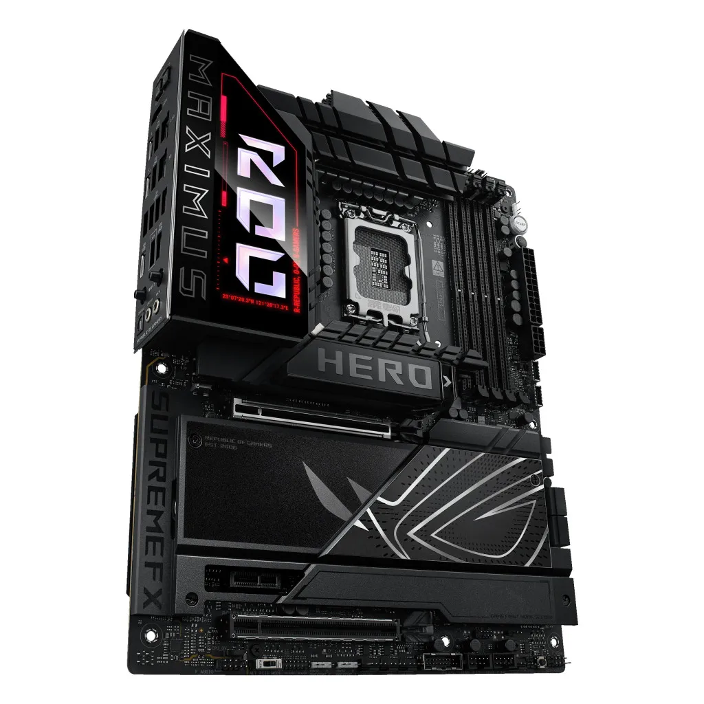 ASUS ROG MAXIMUS Z890 HERO. Protsessori tootja: Intel, Protsessori pesa: LGA 1851 (Socket V1), Ühilduvad protsessoriseeriad: Intel Core Ultra (Series 2). Toetatud mälutüübid: DDR5-SDRAM, Maksimaalne sisemälu: 192 GB, Mälupesa tüüp: DIMM. Kõvaketta ühenduse tüüp: M.2, SATA III, Toetatud ketaste tüübid: HDD & SSD, RAID-tasemed: 0, 1, 5. USB-pistmiku tüüp: USB tüüp A, USB tüüp-C. Ethernet-liidese tüüp: 2.5 Gigabit Ethernet, 5 Gigabit Ethernet, Wi-Fi standard: Wi-Fi 7 (802.11be)