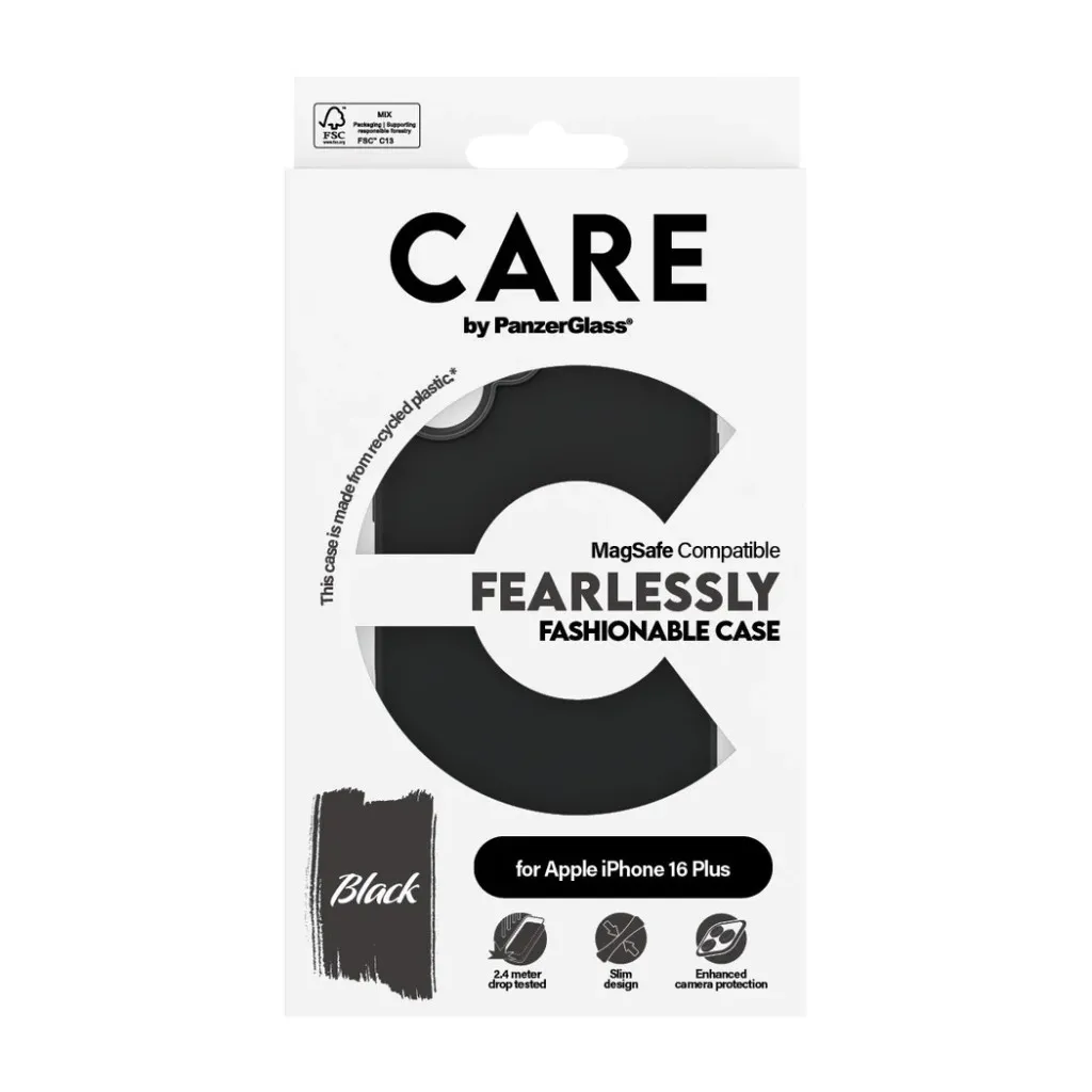 PanzerGlass CARE™ by ® Case Black w. MagSafe iPhone 16 Plus. Karbi tüüp: Kate, Brändiühilduvus: Apple, Ühilduvus: Apple - iPhone 16 Plus, Toote värv: Must