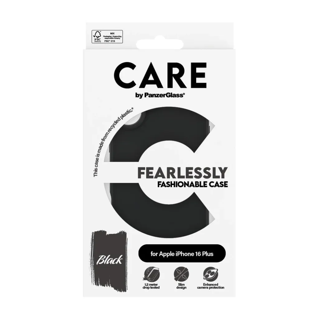 PanzerGlass CARE™ by ® Case Black iPhone 16 Plus. Karbi tüüp: Kate, Brändiühilduvus: Apple, Ühilduvus: Apple - iPhone 16 Plus, Toote värv: Must