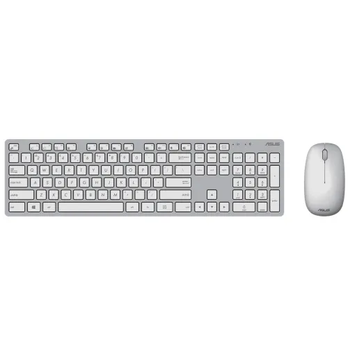 ASUS W5000 Wireless Keyboard and Mouse Set. Klaviatuuri kujutegur: Täissuuruses (100%), Ühenduvustehnoloogia: Juhtmevaba, Seadme liides: Raadioside, Klaviatuuri klahvilüliti: Optiline võtmelüliti, Soovituslik kasutus: Universaalne. Toote värv: Valge. Hiir kaasa arvatud