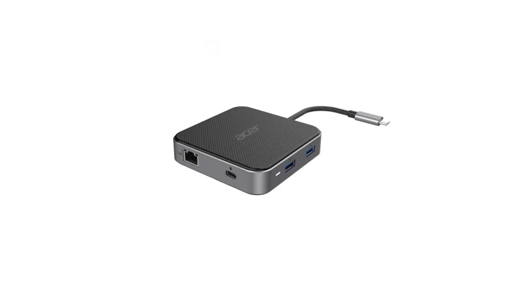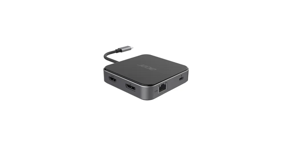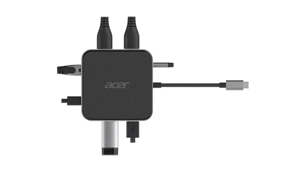 Acer 7-in-1 USB 4 Dongle. Ühenduvustehnoloogia: Juhtmega ühendatud, Hostiliides: USB4, USB Power Delivery kuni: 100 W. Ethernet LAN-i andmeedastuskiirused: 10,100,1000 Mbit/s. Toote värv: Must, Hõbe, HD tüüp: 8K Ultra HD, Maksimaalne digitaalresolutsioon: 7680 x 4320 pikslit. Muud toetatud operatsioonisüsteemid: ChromeOS. Laius: 87 mm, Sügavus: 87 mm, Kõrgus: 20 mm