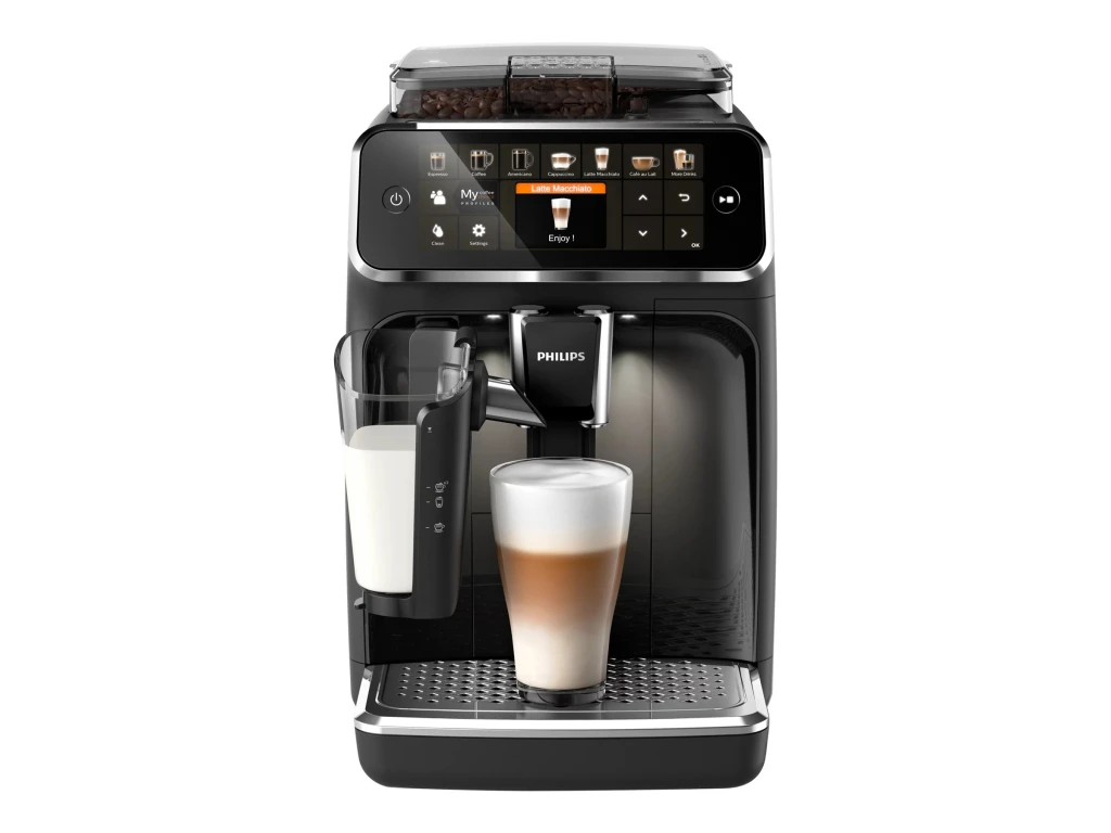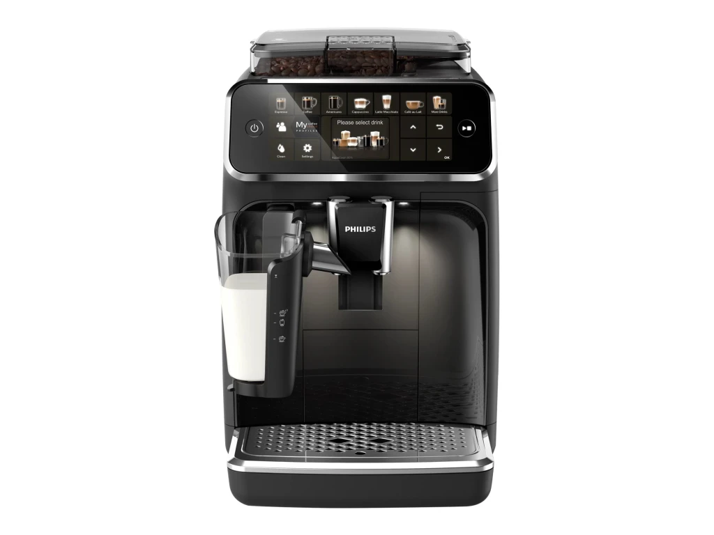 Philips 5400 Series EP5441/50 Täisautomaatne espressomasin. Toote tüüp: Espressomasin, Kohvimasina tüüp: Täisautomaatne, Veemahuti suurus: 1,8 l, Kohvi masinasse panemine: Kohvioad, Keedetud kohvi anum: Tass, Mahutavus tassides: 12 tassi, Sisseehitatud jahvataja. Kuvamise tüüp: TFT-ekraan. Võimsus: 1500 W. Toote värv: Must