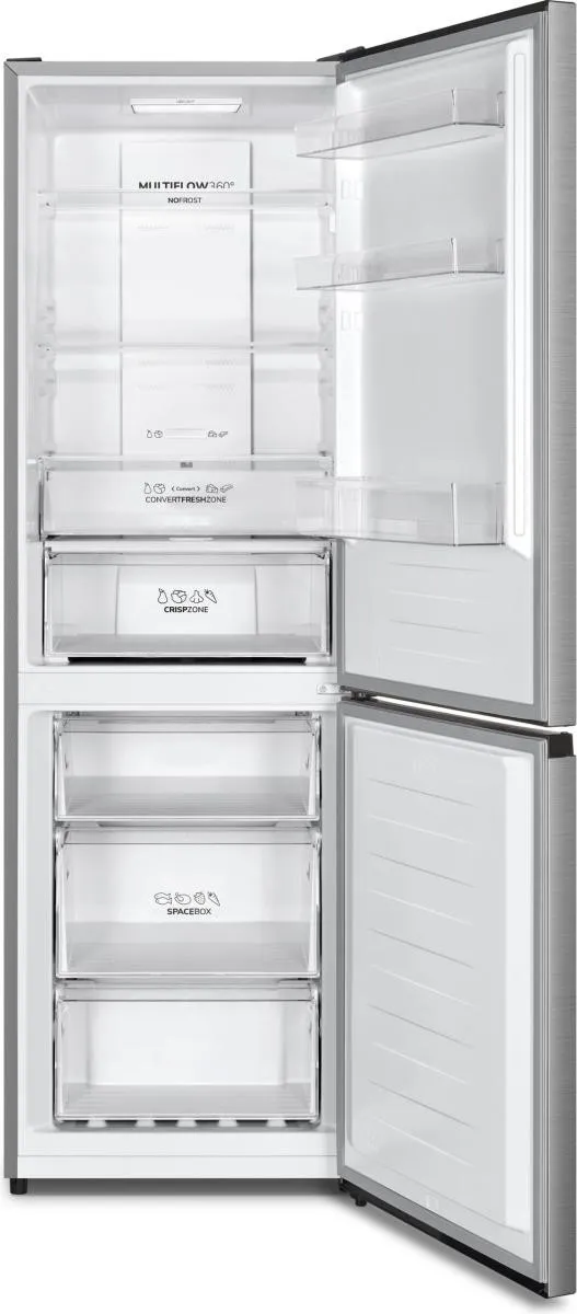 Gorenje N619EAXL4. Neto kogumahutavus: 304 l. Ukse hing: Parem, Kuvamise tüüp: LED. Kliimaklass: Kliimaklass SN-N, Müratase: 39 dB. Külmkapi netomahutavus: 207 l, Jäävaba (külmik), Multi-õhuvool (külmik), Külmkapi sisemuse valgustus. Sügavkülmiku netomahutavus: 97 l, Külmutusvõimsus: 6 kg/24 h, Jäävaba (sügavkülmik). Energiatõhususe klass: E, Aastane energiakulu: 243 kWh. Toote värv: Hall