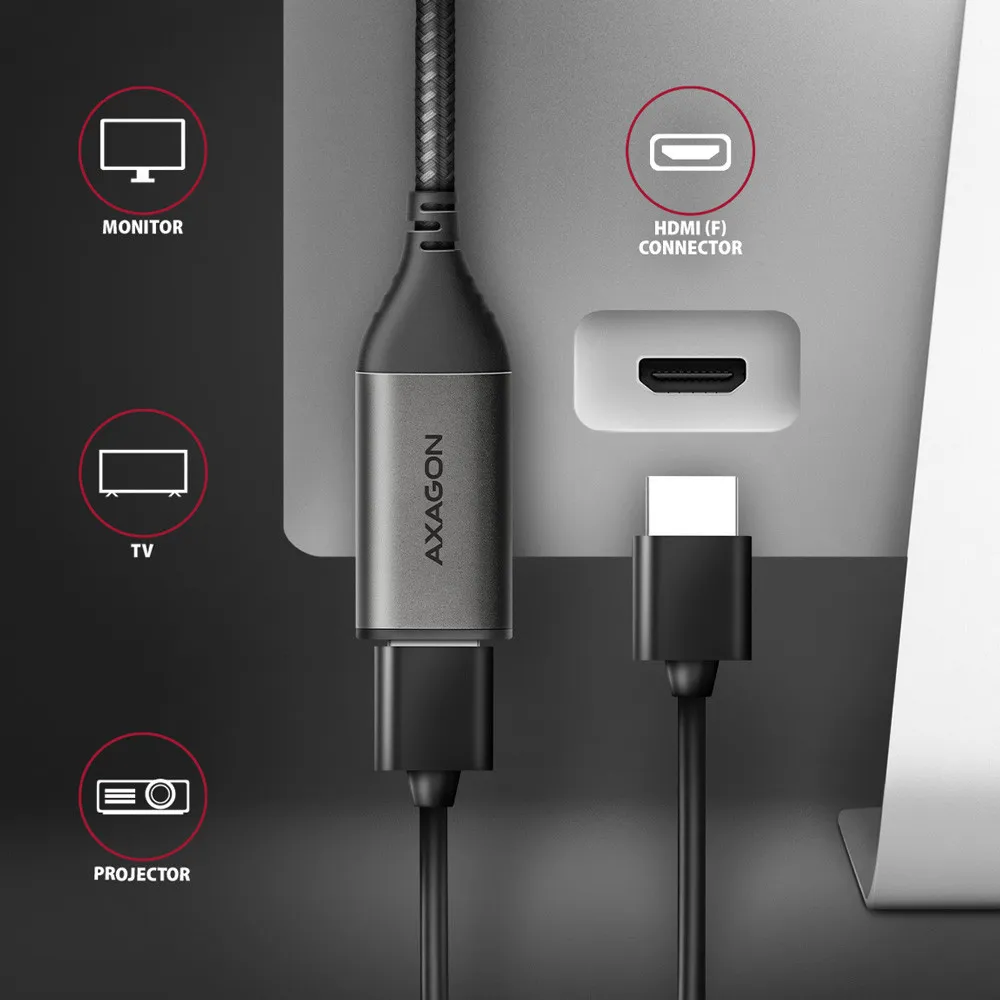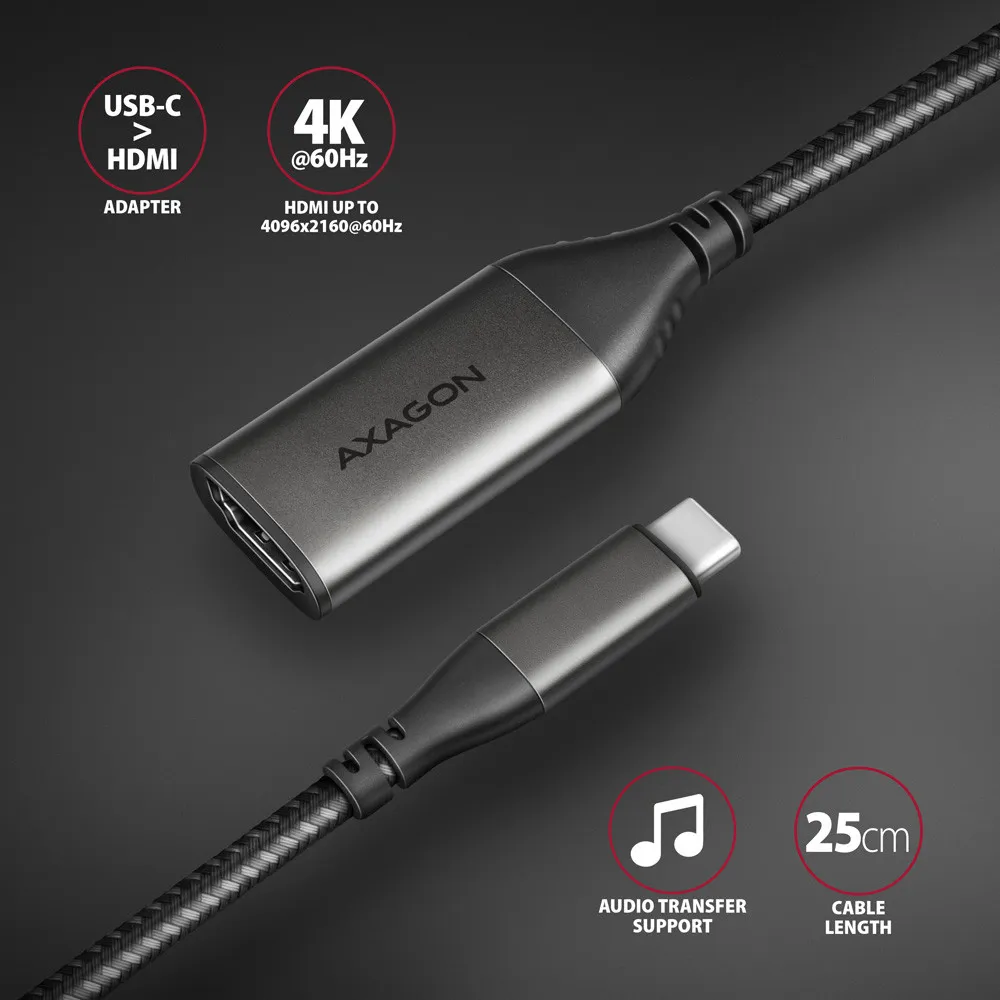 Axagon RVC-HI2M. Kaabli pikkus: 0,25 m, Pistmik 1: USB tüüp-C, Pistmik 2: HDMI. Vastavussertifikaadid: RoHS, Sertifikaat: CE. Kaal: 23 g, Laius: 65 mm, Sügavus: 22 mm. Pakendi laius: 170 mm, Pakendi sügavus: 90 mm, Pakendi kõrgus: 30 mm. Kogus pakis: 1 tk