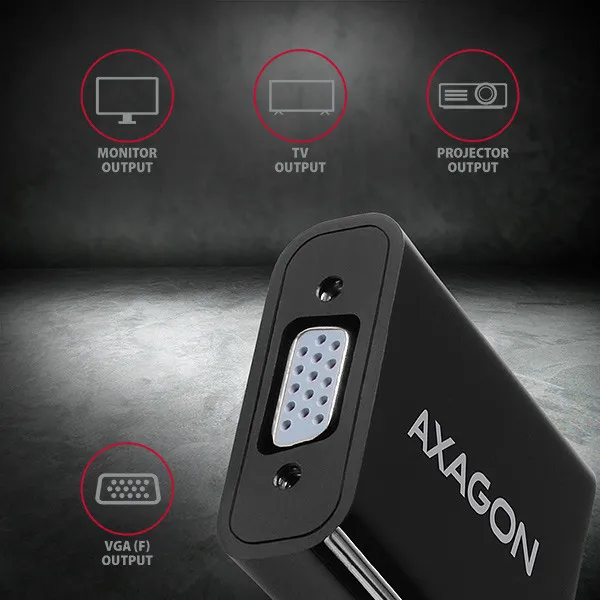 Axagon RVH-VGAN. Kaabli pikkus: 0,15 m, Pistmik 1: HDMI tüüp A (Standard), Pistmik 2: VGA (D-Sub). Vastavussertifikaadid: RoHS, Sertifikaat: CE, FCC. Kaal: 31 g, Laius: 15 mm, Sügavus: 45 mm. Pakendi laius: 25 mm, Pakendi sügavus: 90 mm, Pakendi kõrgus: 180 mm. Kogus pakis: 1 tk