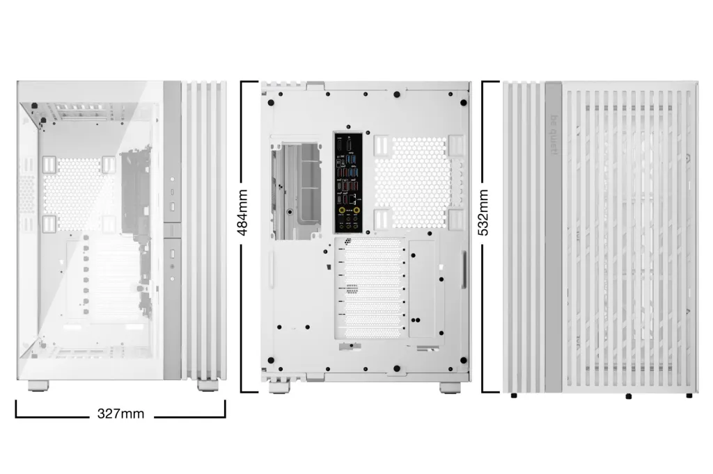 | Summary | be quiet! LIGHT BASE 900 DX White. Form factor: Full Tower, Type: PC, Product colour: White. Supported power supply form factors: ATX, PS2. Side fans diameters supported: 120,140 mm, Rear fans diameters supported: 120,140 mm, Top fans diameters supported: 120,140 mm. Supported HDD sizes: 2.5,3.5". Width: 327 mm, Depth: 532 mm, Height: 484 mm |