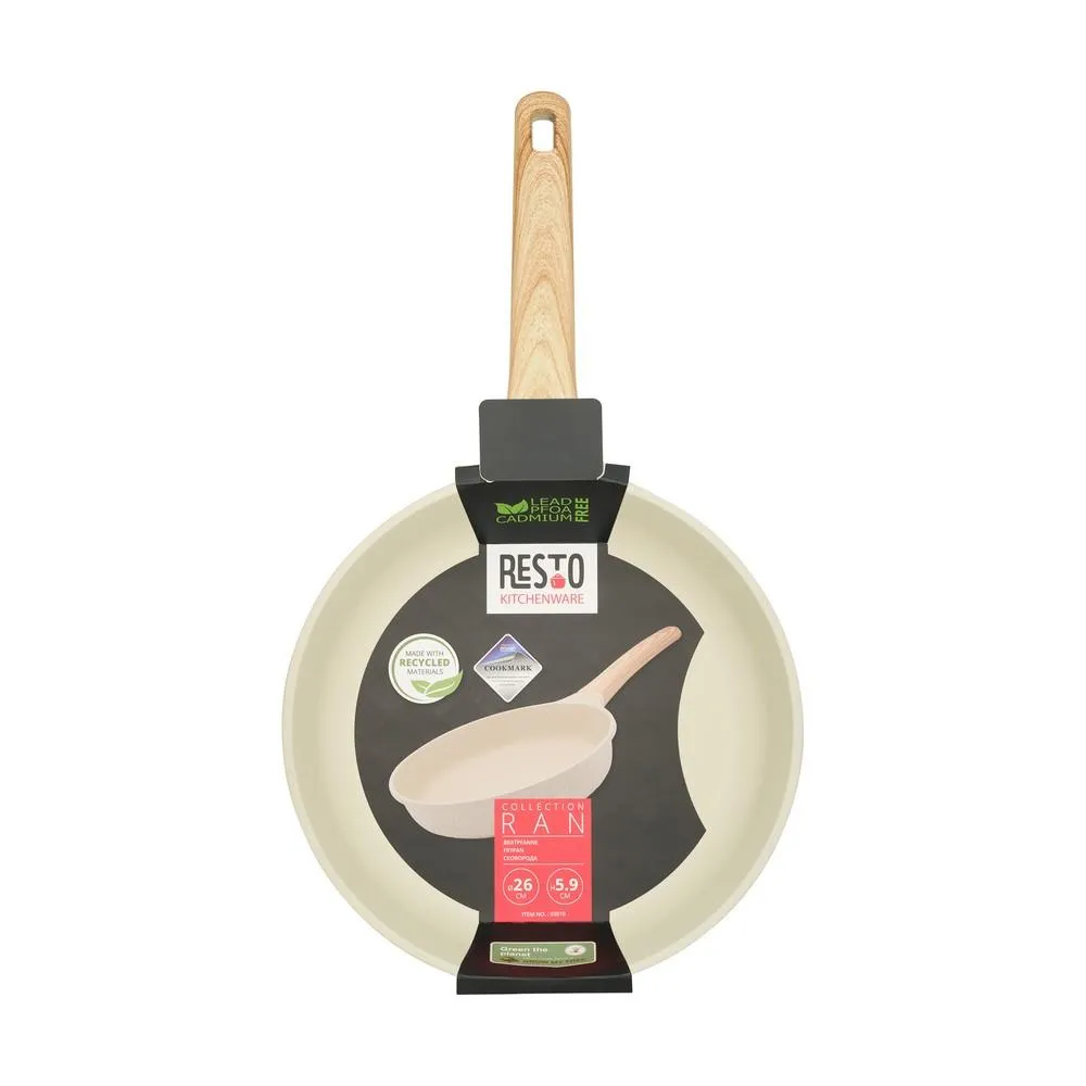 | Summary | Resto Kitchenware Ran. Shape: Round, Type: All-purpose pan, Product colour: Beige, Wood. Diameter: 26 cm, Width: 260 mm, Depth: 260 mm. Quantity per pack: 1 pc(s). Doesn't contain: Cadmium, Lead, Perfluorooctanoic Acid (PFOA) |