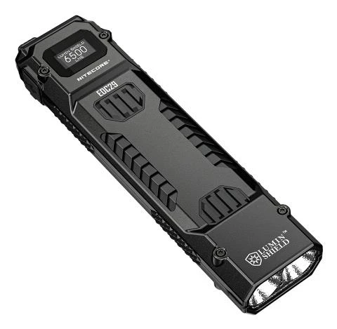 The Nitecore EDC29 flashlight offers exceptional brightness and throw, making it a very powerful flashlight yet still suited for everyday carry. Equipped with the innovative NiteLab UHi 20 MAX LED, the EDC29 delivers a powerful 6,500 lumen output and an impressive throw of up to 437 yards. Designed for versatility, it provides four brightness levels, along with Spotlight, Floodlight, and Strobe modes.