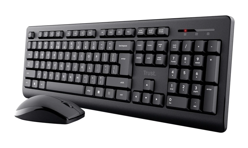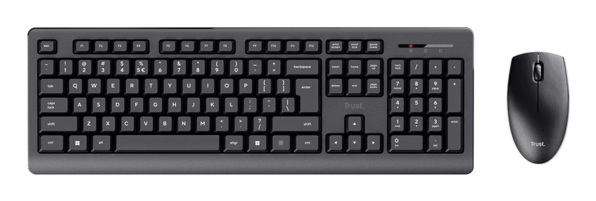Trust Primo. Klaviatuuri kujutegur: Täissuuruses (100%), Ühenduvustehnoloogia: Juhtmevaba, Seadme liides: Raadioside, Klaviatuuri klahvilüliti: Membraaniga klahvlüliti, Klaviatuuri paigutus: QWERTY, Soovituslik kasutus: Universaalne. Toote värv: Must. Hiir kaasa arvatud
