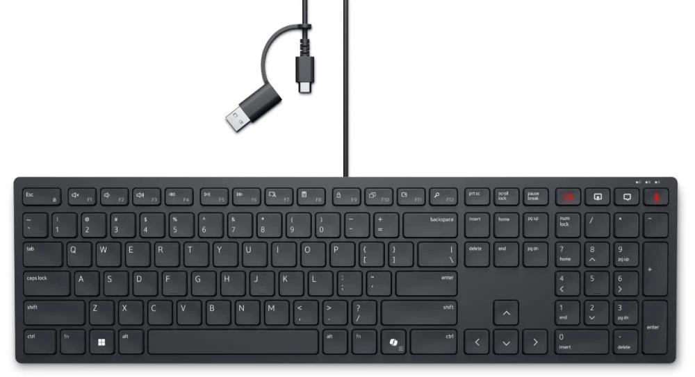 A wired keyboard engineered for productivity and comfort featuring built-in collaboration keys.