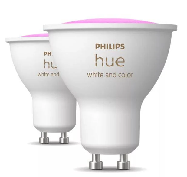 Philips Hue White and colour ambience GU10. Tüüp: Nutikas kohtvalgustus, Toote värv: Valge, Pirni tüüp: LED. Toetatud mobiilsed operatsioonisüsteemid: Android, iOS. Energiatõhususe klass: E, Energiakulu 1000 tunni kohta: 5 kWh, Energiatõhususe skaala: A-st G-ni. Laius: 50 mm, Sügavus: 50 mm, Kõrgus: 57 mm. Pakendi tüüp: Karp, Pakendi laius: 72 mm, Pakendi sügavus: 72 mm