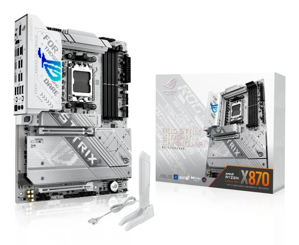 | Summary | ASUS ROG STRIX X870-A GAMING WIFI. Processor manufacturer: AMD, Processor socket: Socket AM5, Supported processor sockets: Socket AM5. Supported memory types: DDR5-SDRAM, Maximum internal memory: 192 GB, Memory slots type: DIMM. Supported storage drive interfaces: M.2, SATA III, Supported storage drive types: HDD & SSD, RAID levels: 0, 1, 10, 5. Ethernet interface type: 2.5 Gigabit Ethernet, Top Wi-Fi standard: Wi-Fi 7 (802.11be), Wi-Fi standards: Wi-Fi 7 (802.11be). Component for: PC, Motherboard form factor: ATX, Motherboard chipset family: AMD |