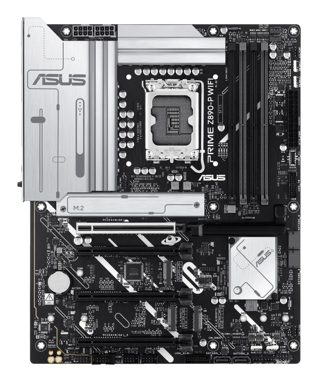 The PRIME Z890-P WIFI offers a total of four M.2 slots, including one that supports data-transfer speeds of up to 128Gbps via PCIe 5.0, three that support 64Gbps via PCIe 4.0. This enables quicker boot-up and app load times with OS or application drives.6