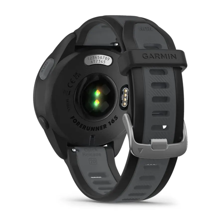 | Summary | Garmin Forerunner 165. Display diagonal: 3.05 cm (1.2"), Display technology: AMOLED, Display resolution: 390 x 390 pixels, Touchscreen. Flash memory: 4 GB. GPS (satellite). Weight: 39 g. Band material: Silicone, Band colour: Black, Grey |
