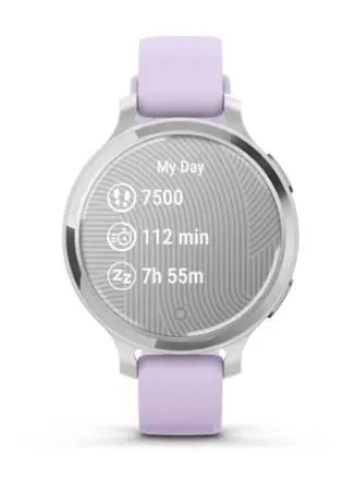 | Summary | Garmin Lily 2 Active. Display resolution: 240 x 201 pixels, Touchscreen. GPS (satellite). Weight: 29 g. Waterproof up to: 50 m, Band material: Silicone, Band colour: Purple, Band size: One Size |
