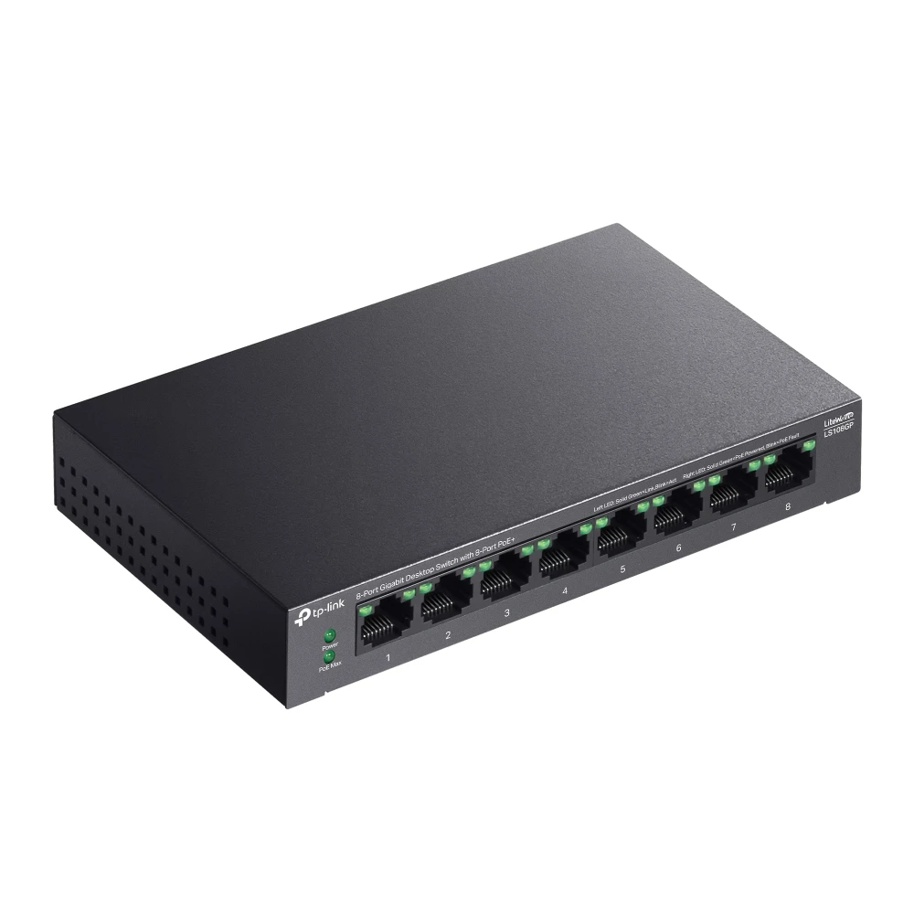 TP-Link LiteWave LS108GP. Lüliti tüüp: Mittejuhitav. RJ-45 Etherneti ühenduse pesade tüüp: Gigabit Ethernet (10/100/1000), RJ-45 Etherneti ühenduse pesade arv: 8. MAC-aadresside tabel: 4000 sisestust, Lülitusvõime: 16 Gbit/s. Võrgustandardid: IEEE 802.1p, IEEE 802.3ab, IEEE 802.3af, IEEE 802.3at, IEEE 802.3i, IEEE 802.3u, IEEE 802.3x, IEEE.... Alalisvoolu sisendpinge: 53.5 V. Toitepistmik: Alaldi sisendi pesa. Power over Ethernet tugi