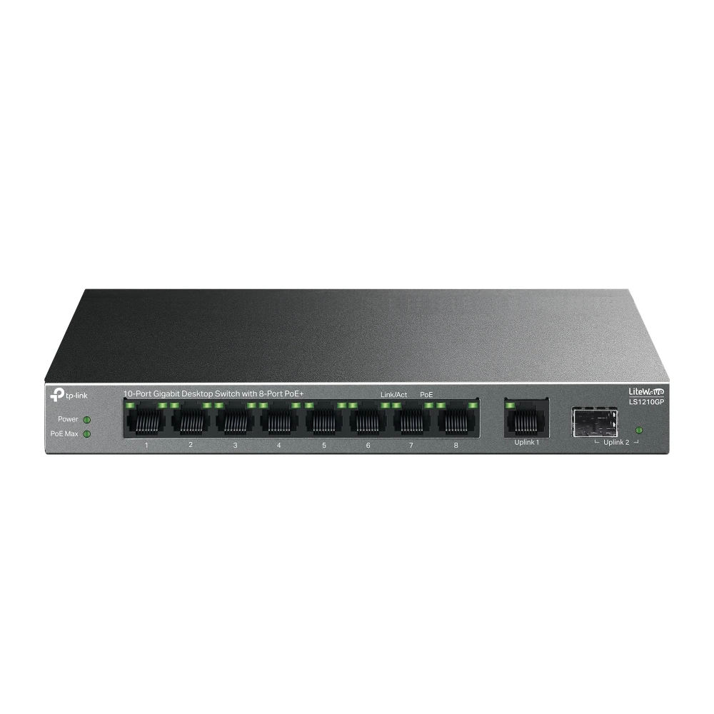 TP-Link LiteWave LS1210GP. Lüliti tüüp: Mittejuhitav. RJ-45 Etherneti ühenduse pesade tüüp: Gigabit Ethernet (10/100/1000), RJ-45 Etherneti ühenduse pesade arv: 9. MAC-aadresside tabel: 4000 sisestust, Lülitusvõime: 20 Gbit/s. Võrgustandardid: IEEE 802.1p, IEEE 802.3ab, IEEE 802.3af, IEEE 802.3at, IEEE 802.3i, IEEE 802.3u, IEEE 802.3x, IEEE.... Alalisvoolu sisendpinge: 53.5 V. Power over Ethernet tugi