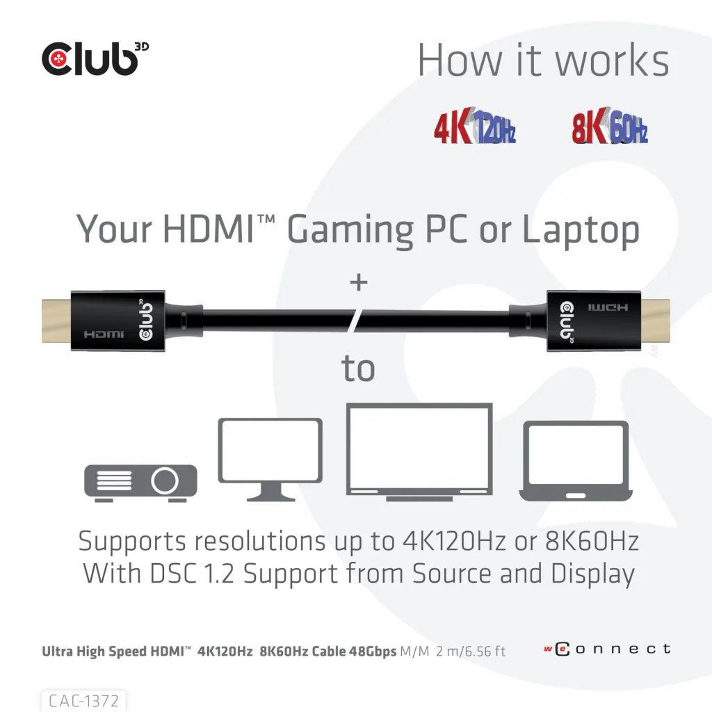 The Club 3D Ultra High Speed HDMI™ 2.1 Cable is build to handle the highest quality video- and audio signals.
