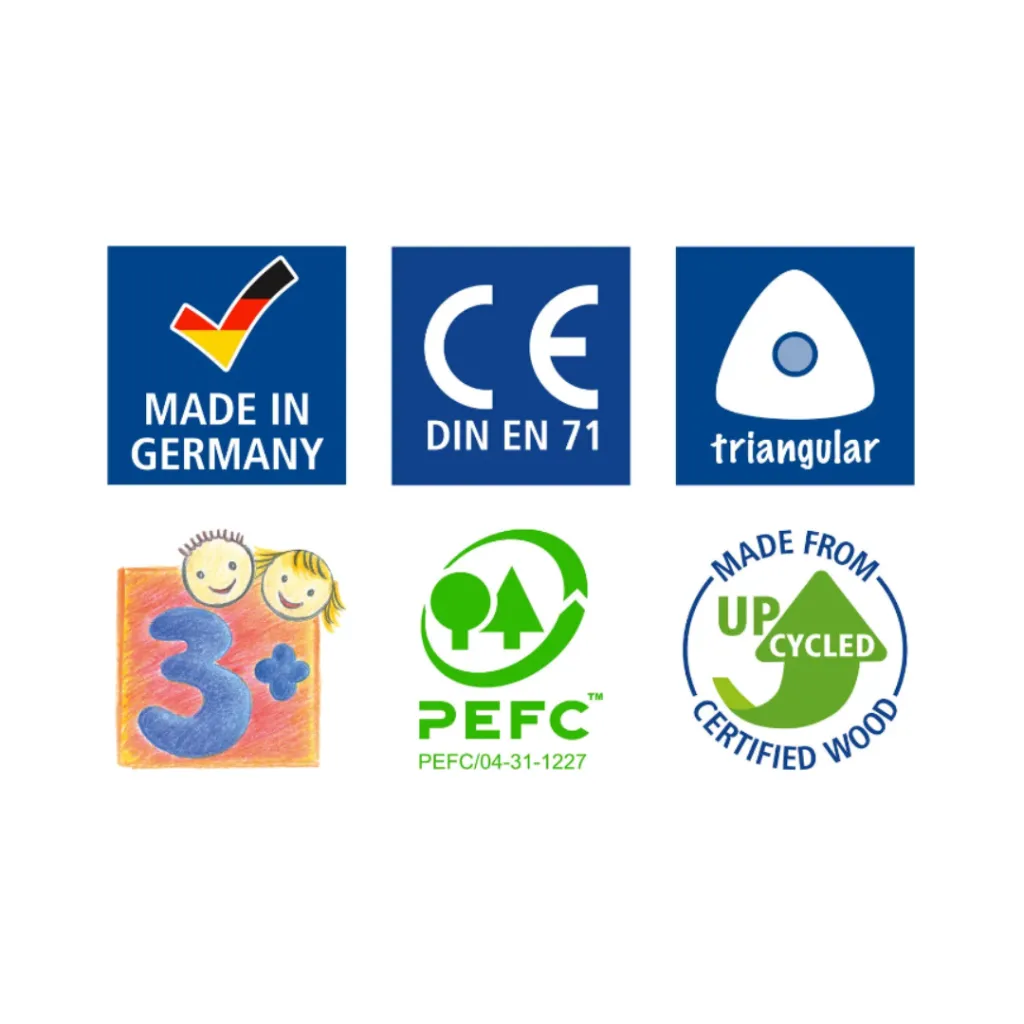 • värviline 3-kandilised pliiatsid – valmistatud ümbertöödeldud puidust