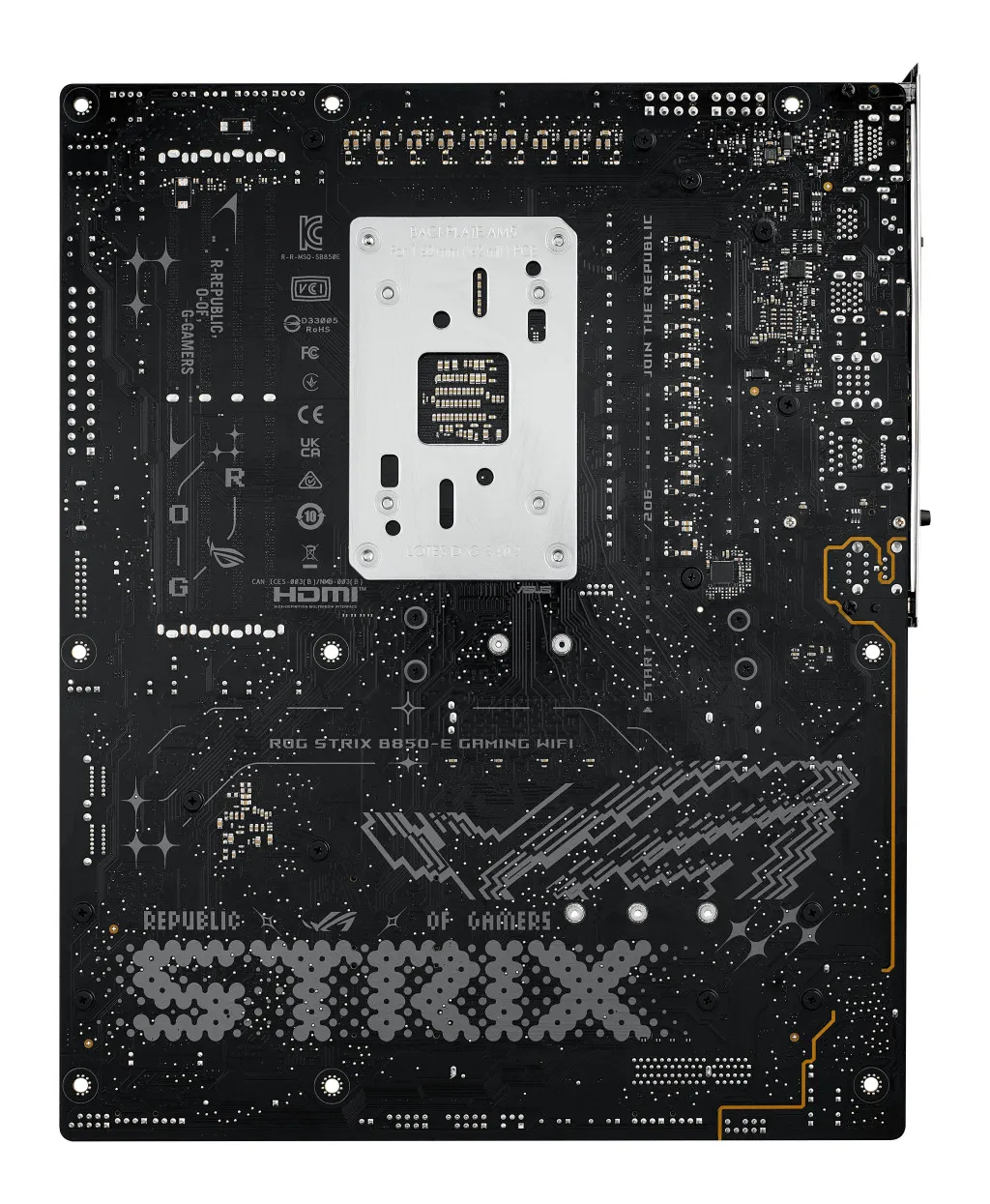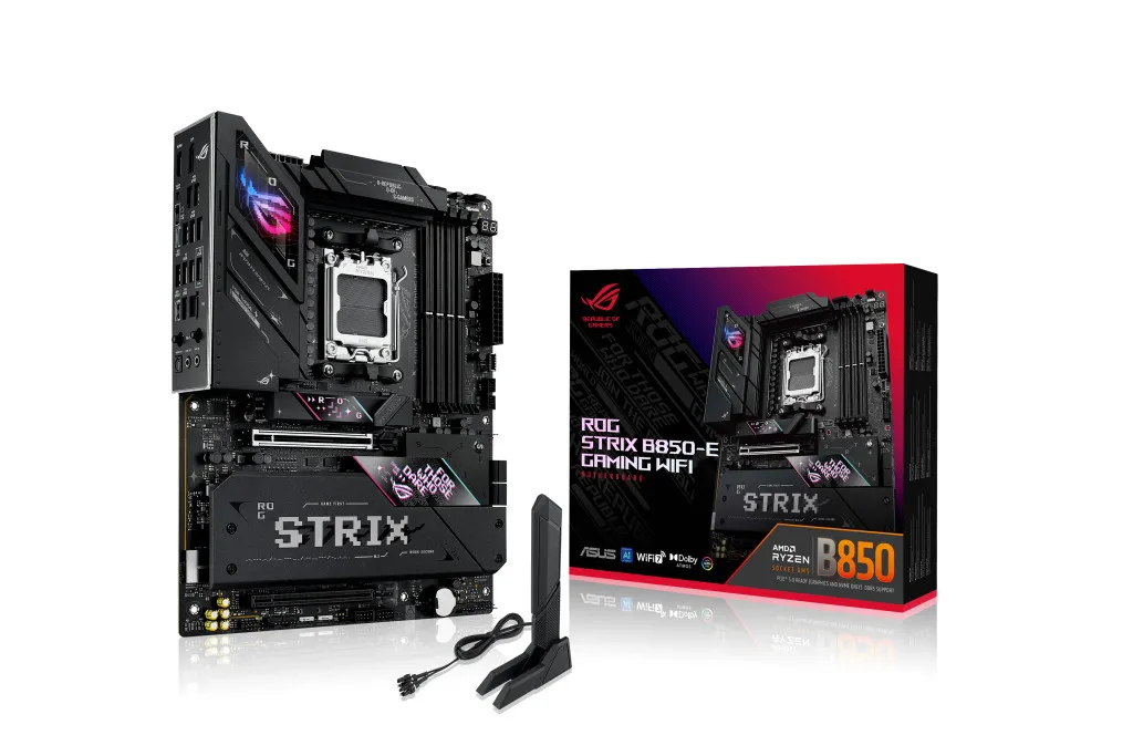 ASUS ROG STRIX B850-E GAMING WIFI. Protsessori tootja: AMD, Protsessori pesa: Protsessoripesa AM5, Ühilduvad protsessoriseeriad: AMD Ryzen 7000 Series, AMD Ryzen 8000 Series, AMD Ryzen 9000 Series. Toetatud mälutüübid: DDR5-SDRAM, Maksimaalne sisemälu: 192 GB, Mälupesa tüüp: DIMM. Kõvaketta ühenduse tüüp: M.2, SATA III, Toetatud ketaste tüübid: HDD & SSD, RAID-tasemed: 0, 1, 5, 10. Maksimaalne resolutsioon: 7680 x 4320 pikslit. Ethernet-liidese tüüp: 5 Gigabit Ethernet, Wi-Fi standard: Wi-Fi 7 (802.11be), WiFi-standardid: Wi-Fi 7 (802.11be)