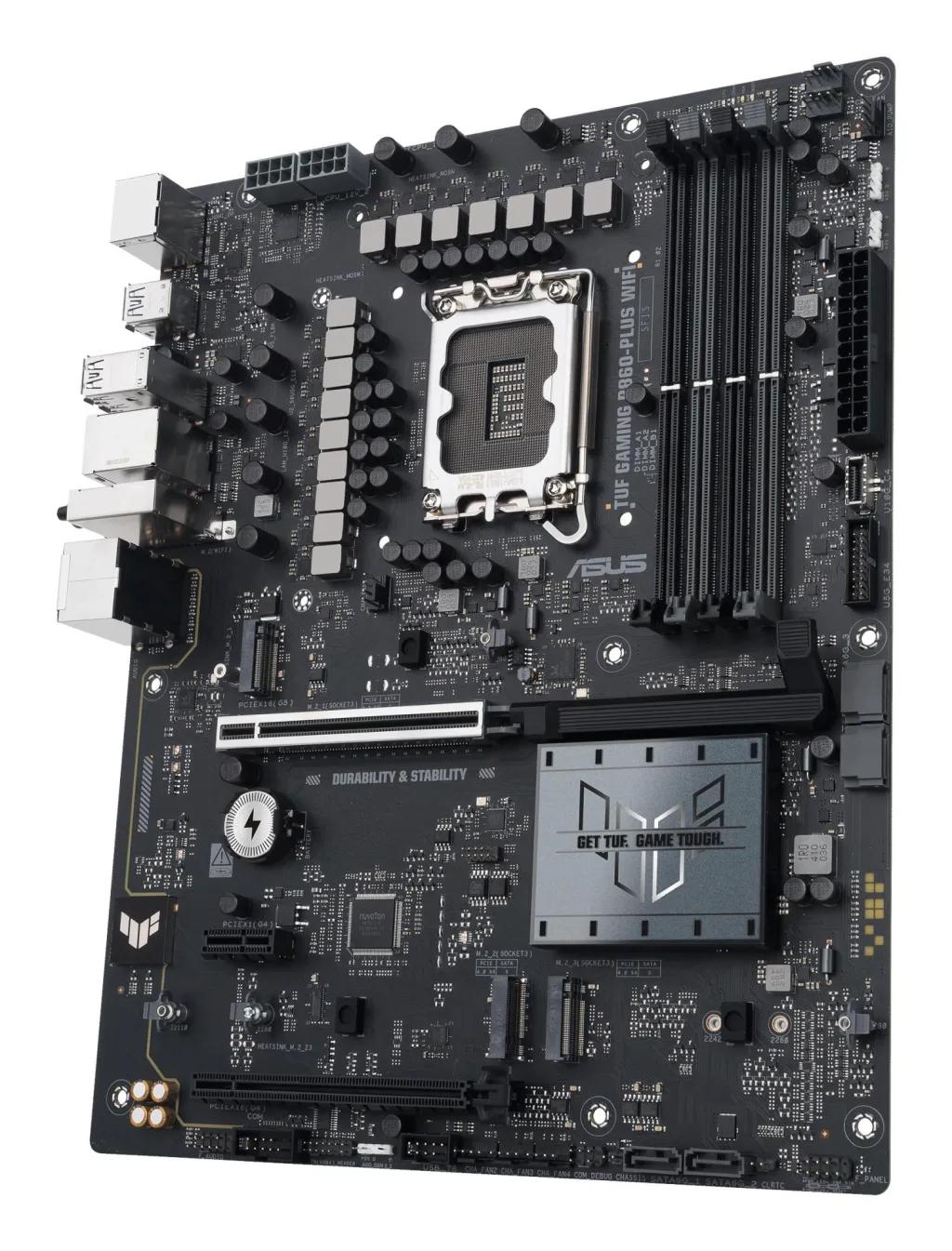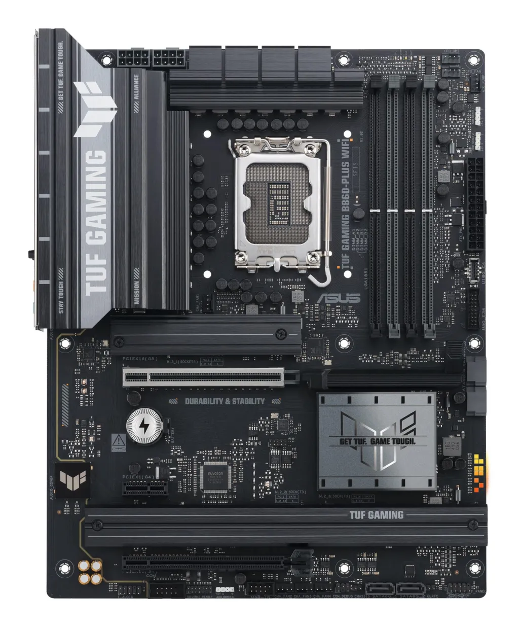 ASUS TUF GAMING B860-PLUS WIFI takes all the essential elements of the latest Intel® Core™ Ultra Processors (Series 2) processors and combines them with game-ready features and proven durability. Engineered with military-grade components, an upgraded power solution and a comprehensive cooling system, this motherboard goes beyond expectations with rock-solid and stable performance for marathon gaming. TUF GAMING motherboards also undergo rigorous endurance testing to ensure that they can handle conditions where others may fail. This platform delivers the power and connectivity that advanced AI PC applications demand.