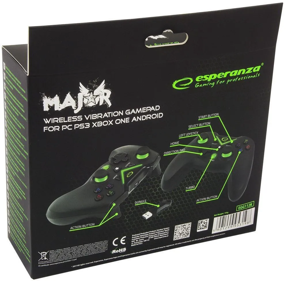 Esperanza EGG112K Major, Vibration Gamepad Wireless for PC/PS3/XBOX ONE/ANDROID