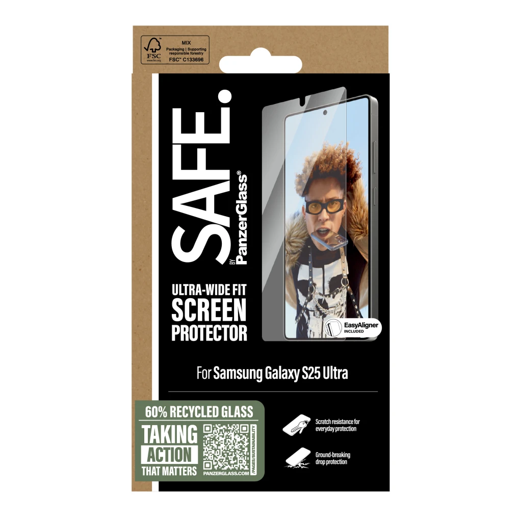 PanzerGlass SAFE. by ® Screen Protector Samsung Galaxy S25 Ultra | Ultra-Wide Fit w. EasyAligner. Brändiühilduvus: Samsung, Ühilduvus: Samsung - Galaxy S25 Ultra. Kuiv pealekandmine. Kaitseomadused: Kriimukindel, Löögikindel. Materjal: Karastatud klaas, Polüetüleentereftalaat (PET), Silikoon, Toote värv: Läbipaistev. Kogus pakis: 1 tk