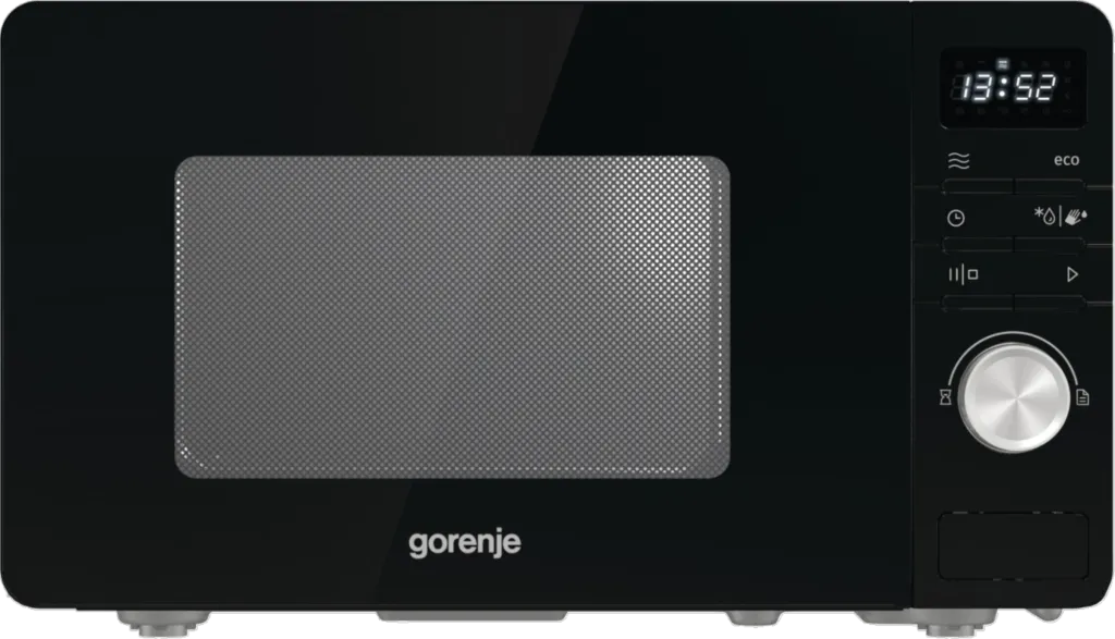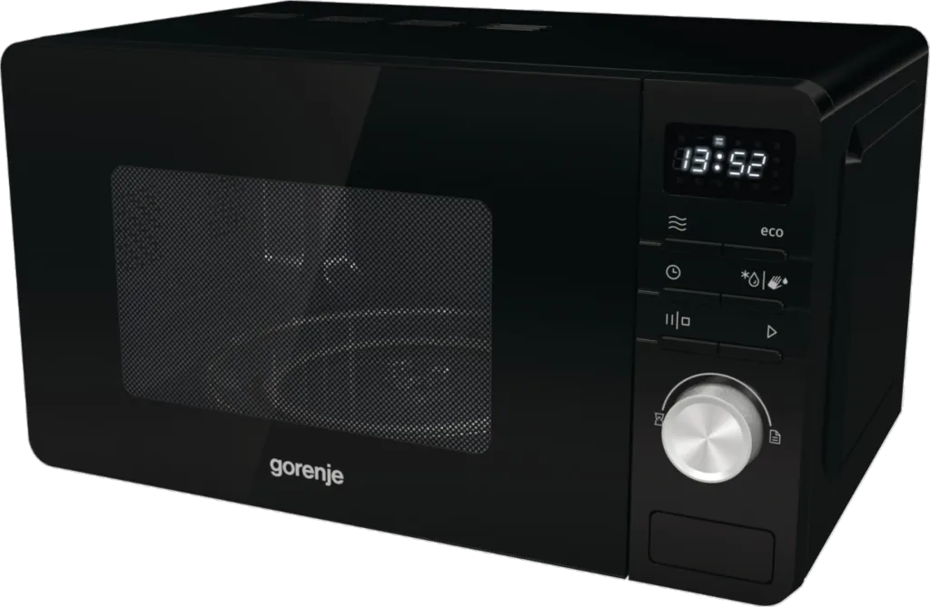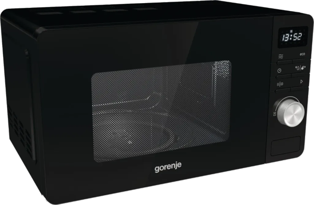 Gorenje MO20A3B. Seadme paigaldus: Tööpinna peal, Toote tüüp: Eraldiseisev mikrolaineahi, Sisemahutavus: 20 l, Mikrolainevõimsus: 800 W, Sisseehitatud ekraan, Kuvamise tüüp: LED, Kontrolli tüüp: Nööbid, Toote värv: Must