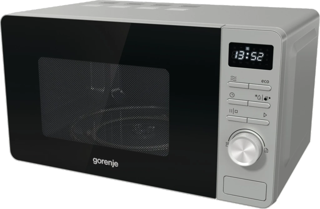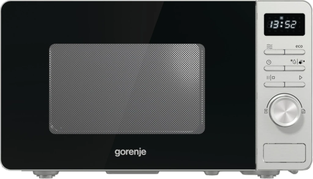 Gorenje MO20A3X. Seadme paigaldus: Tööpinna peal, Toote tüüp: Eraldiseisev mikrolaineahi, Sisemahutavus: 20 l, Mikrolainevõimsus: 800 W, Sisseehitatud ekraan, Kontrolli tüüp: Nööbid, Pöörlev, Toote värv: Roostevaba teras