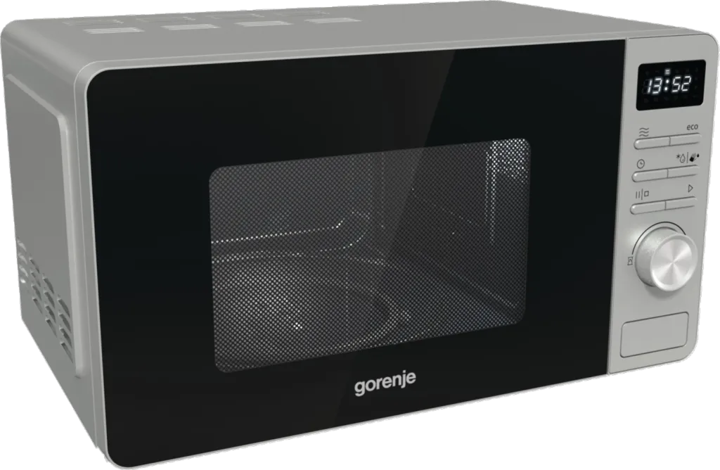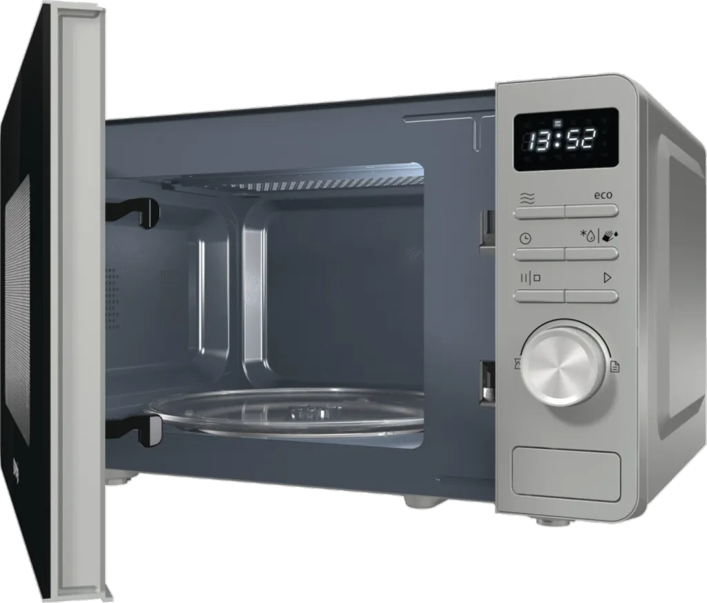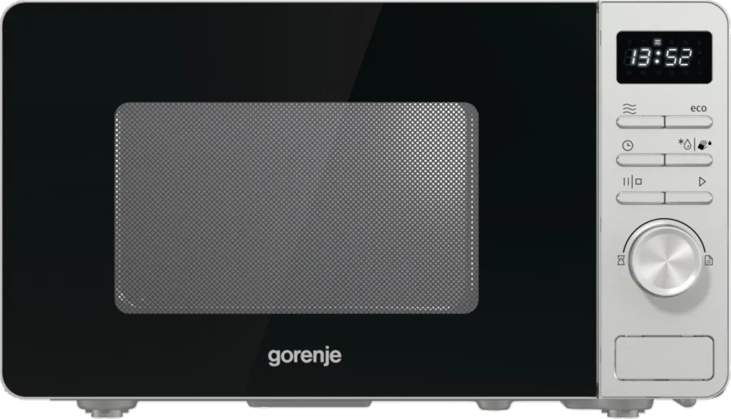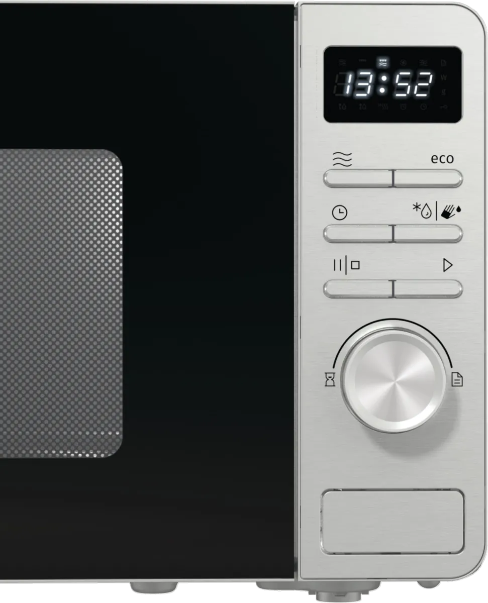 Gorenje MO20A3X. Seadme paigaldus: Tööpinna peal, Toote tüüp: Eraldiseisev mikrolaineahi, Sisemahutavus: 20 l, Mikrolainevõimsus: 800 W, Sisseehitatud ekraan, Kontrolli tüüp: Nööbid, Pöörlev, Toote värv: Roostevaba teras